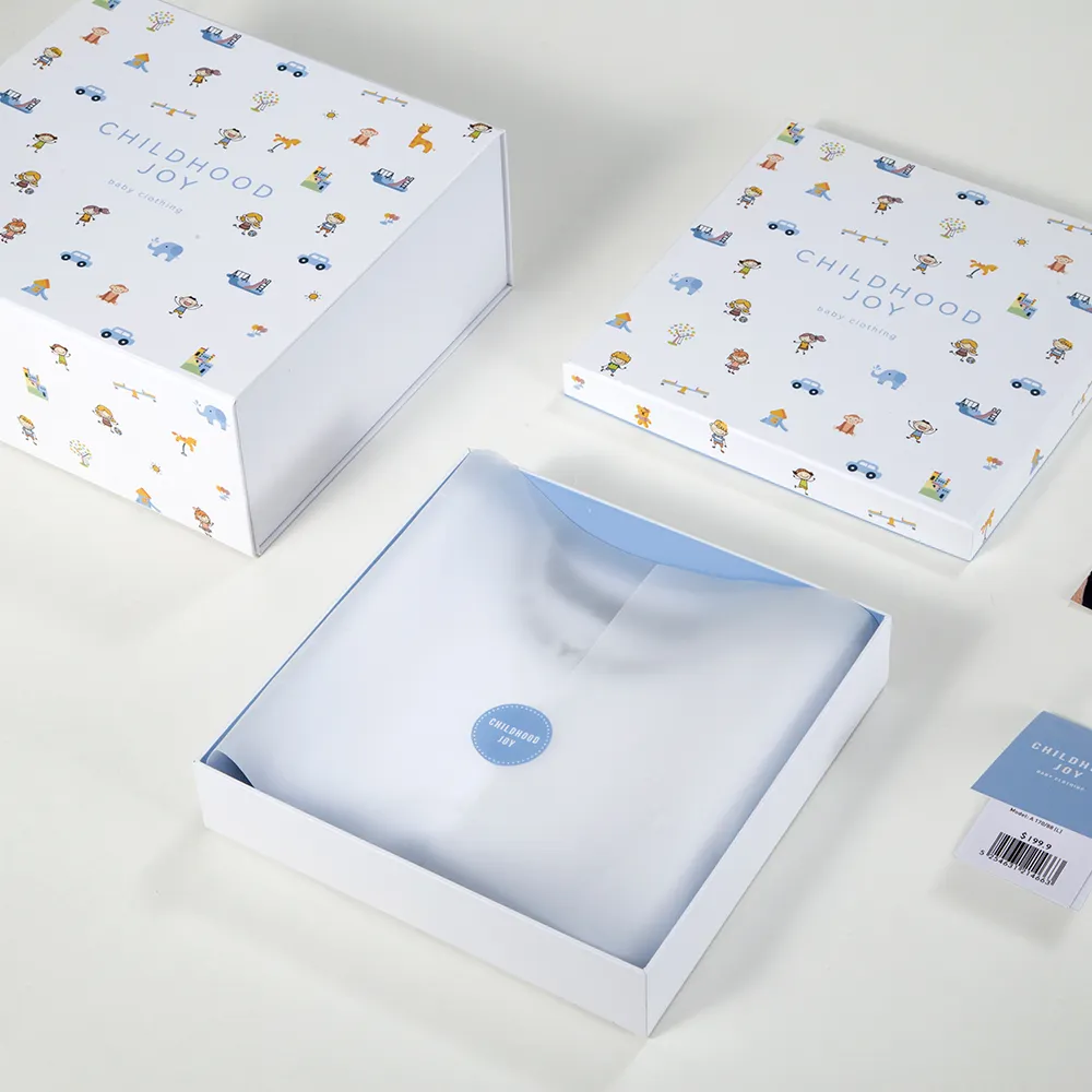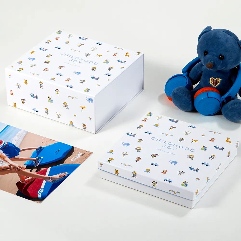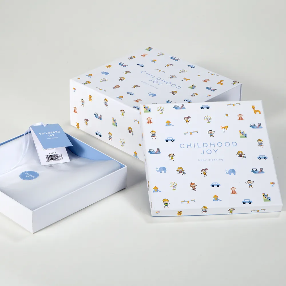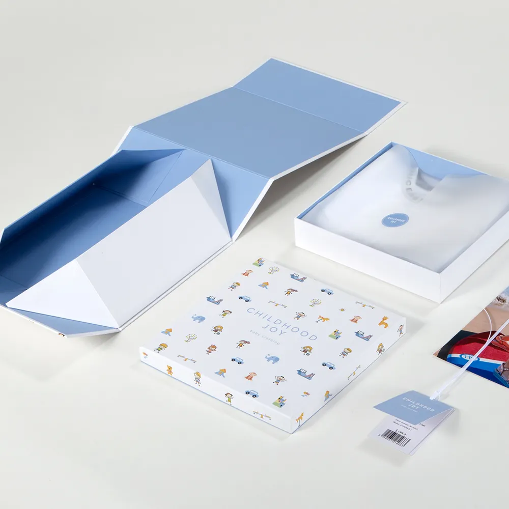 Delight new parents and gift-givers alike with our Custom Baby Clothes Gift Box Packaging—a foldable, beautifully crafted box that adds a touch of charm and elegance to every baby gift. Made with exquisite workmanship and attention to detail, this box combines practicality with visual appeal, making it perfect for boutiques, baby showers, or premium retail sets.