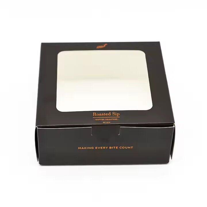 Made from high-quality cardboard, this durable box features a flip-top lid and clear window, allowing customers to preview your baked creations while keeping them fresh and protected.