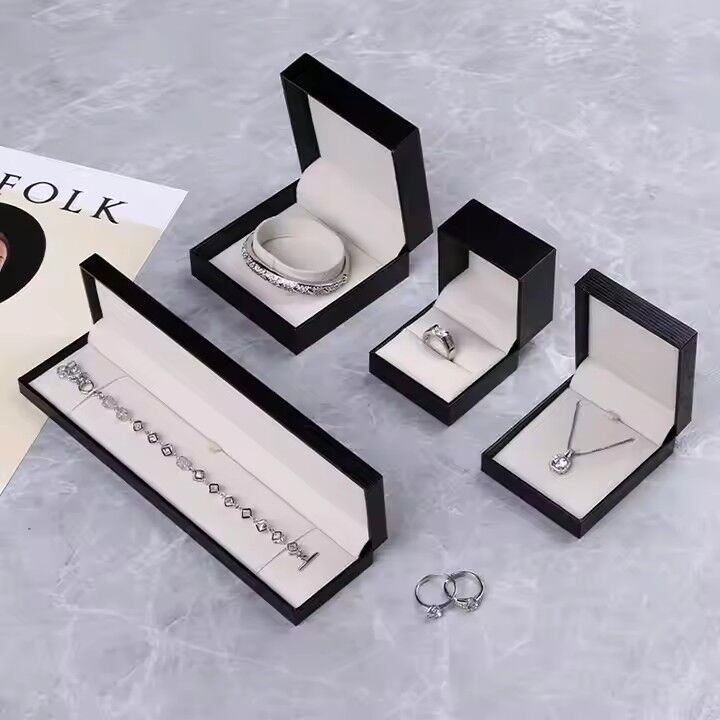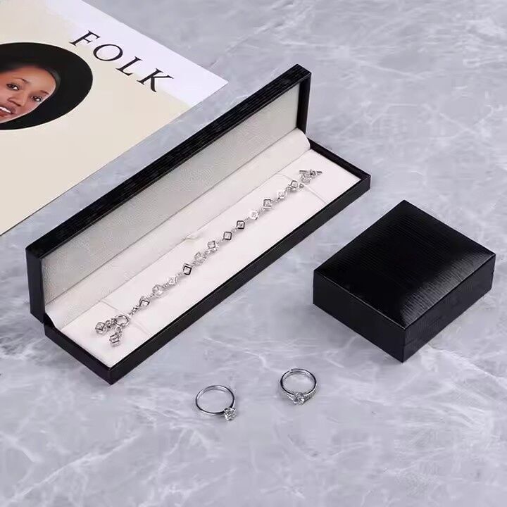 Elevate your jewelry presentation with this custom classic hinged jewelry box. Featuring a sturdy plastic box body and a smoothly operating hinged lid, it combines durability with timeless elegance. Wrapped in high-quality textured paper and lined with soft velvet, this box offers a luxurious feel and superior protection for your precious pieces. Crafted with fine workmanship and meticulous attention to detail, it creates the perfect luxury packaging solution that enhances the value and appeal of your jewelry collection.