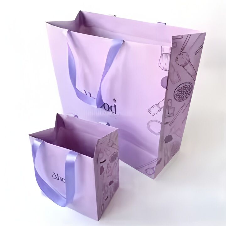 Add a touch of luxury to your packaging with our custom elegant ribbon handle paper bags. Designed to impress, these bags feature soft satin or grosgrain ribbon handles that offer both beauty and comfort, making them ideal for premium retail, events, or gift packaging.