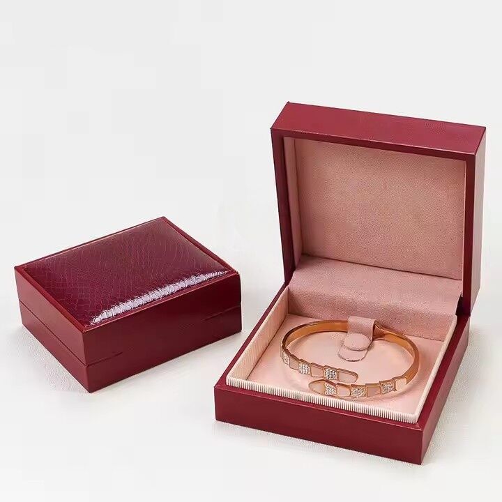 Present your precious pieces in unmatched style with our Custom Luxury Jewelry Box. Featuring a classic hinged lid design, this box is wrapped in luxurious burgundy leather paper that exudes sophistication and richness.
