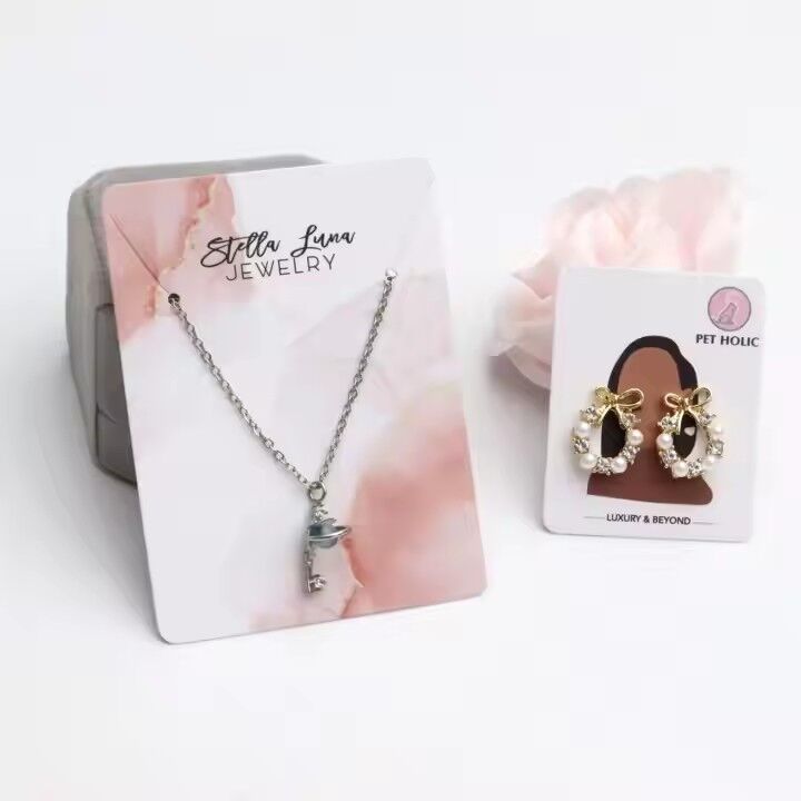 Perfect for earrings, necklaces, and bracelets, these high-quality cards offer ample space for your brand’s logo, product details, and eye-catching designs.