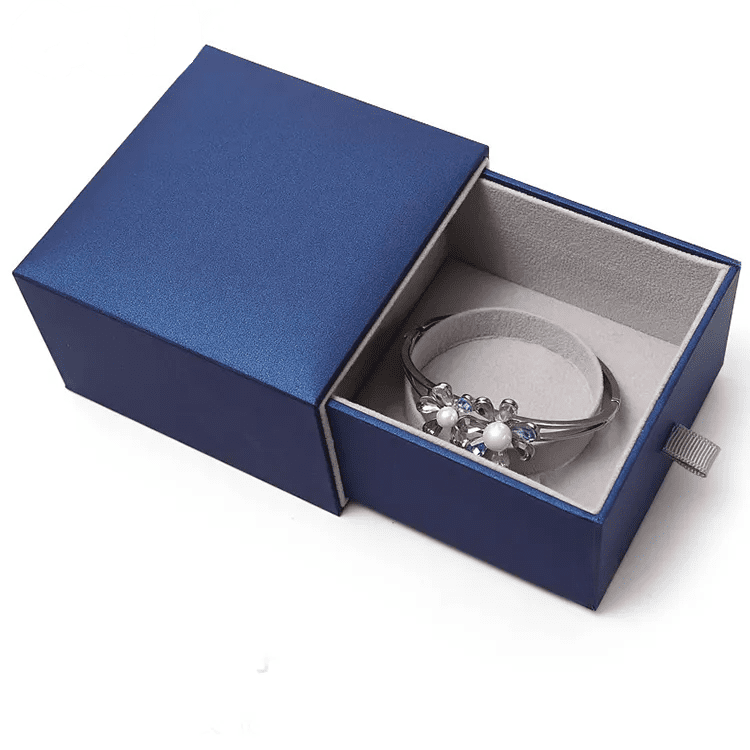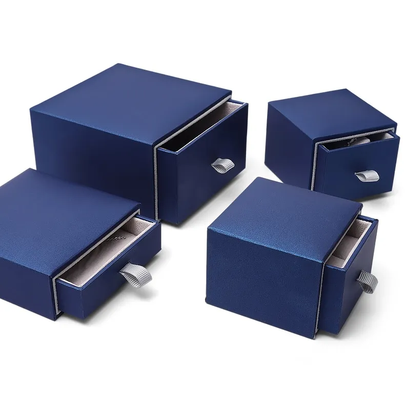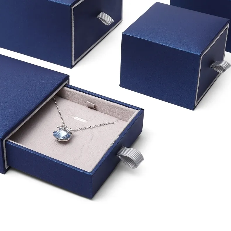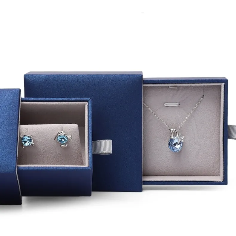 Indulge in the elegance of our high-grade blue jewelry box, designed to showcase your finest pieces with style and sophistication. The rich blue exterior exudes luxury, while the gray plush interior provides a soft and protective resting place for your jewelry.