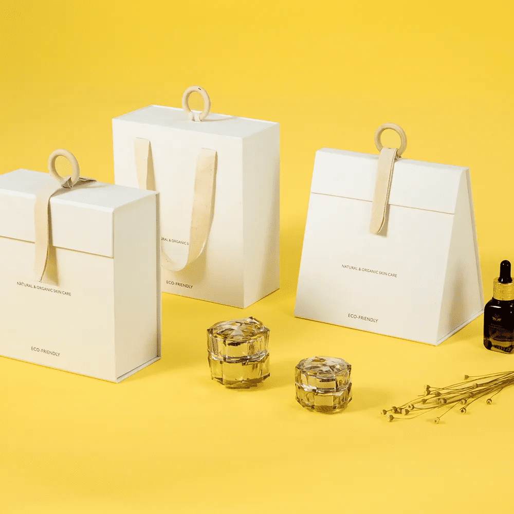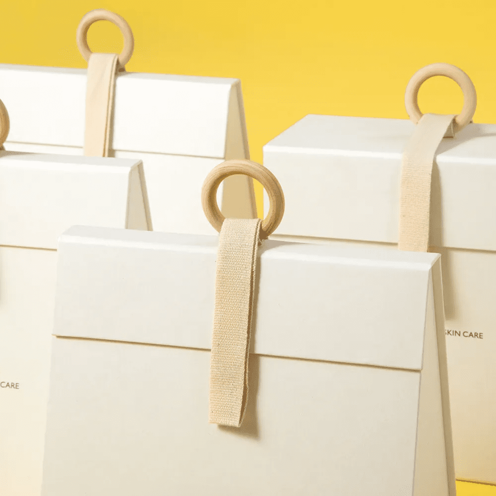 Add a touch of sophistication to your cosmetic products with our custom elegant hand-held cosmetic packaging box.