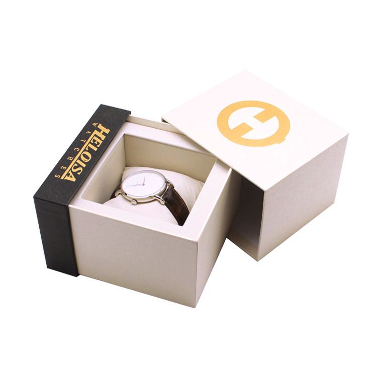 It is a men’s style watch box with a simple color scheme, the pull-out opening way that allows the product to be slowly revealed. Inside, a velvet pillow secures the watch so that it does not shake in transit and also serves as a great retail display.