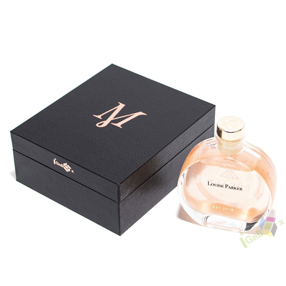 Crafted from high-quality textured paper, this luxury perfume box exudes elegance and sophistication. The bold hot-stamped logo adds a striking, premium touch—perfect for upscale fragrance presentation.
